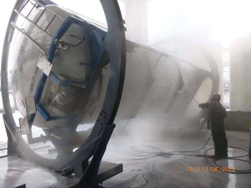 appositamente attrezzata per la pulizia esterna completa dove a mezzo di un ribaltatore